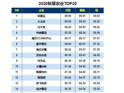 - 2020智慧农业TOP30